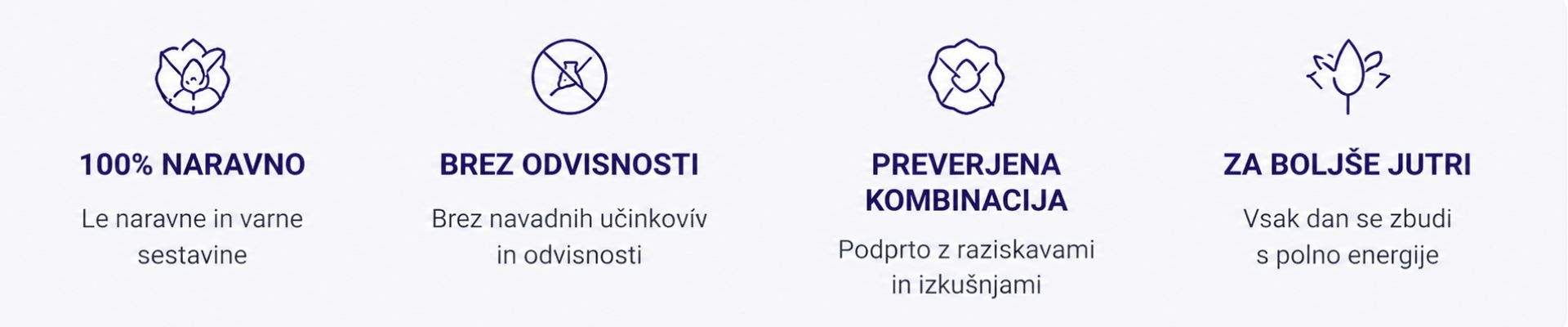 - ✔ Melatonin 3 mg – pomaga hitreje zaspati