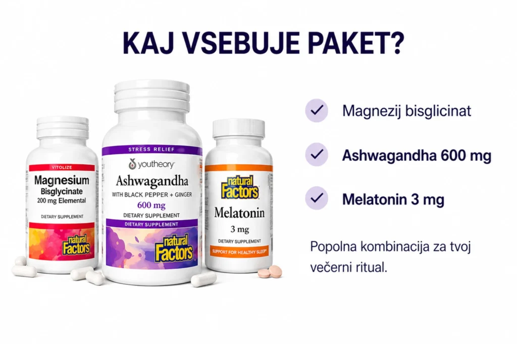- ✔ Magnezij bisglicinat – sprosti telo in živčni sistem